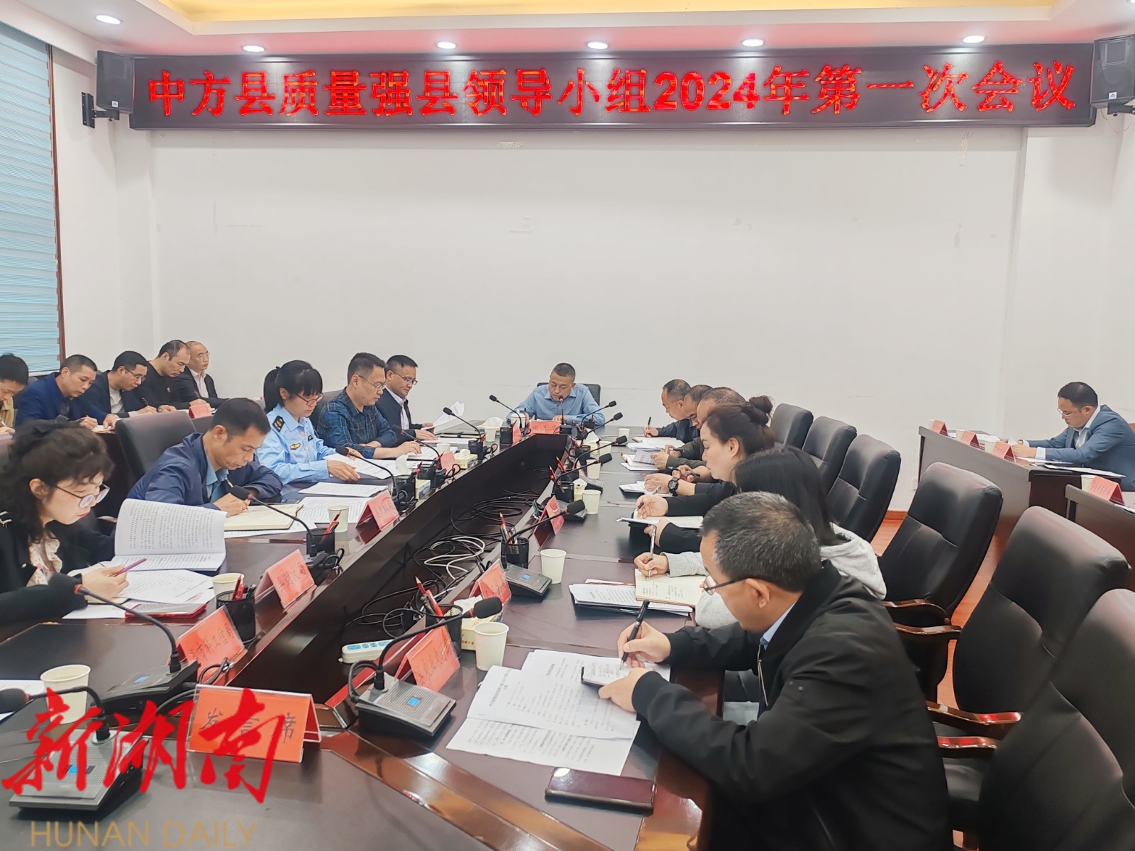 中方融媒4月28日讯 4月25日,中方县质量强县领导小组2024年第一次会议召开,副县长熊勇华及县委组织部、县委宣传部、县市场监督管理局、县发改局等27个成员单位相关负责人参会。