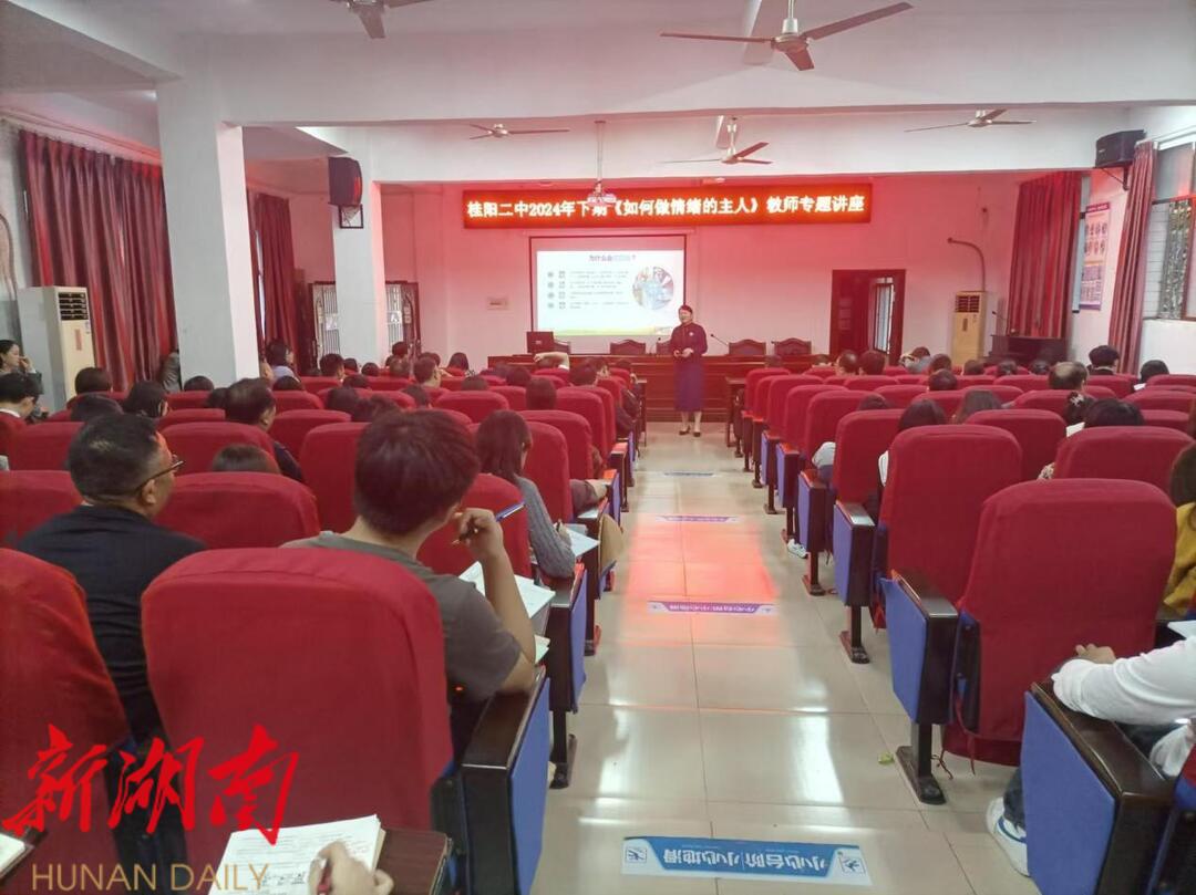新桂阳 10月18日讯(通讯员 刘平) 为深化教师对心理健康的理解,提升教师情绪调适能力,增强职业幸福感,培养积极乐观的心态,10月16日,桂阳二中邀请心理咨询师为全体教师上了一场题为《如何做情绪的主人》的心理健康专题讲座。