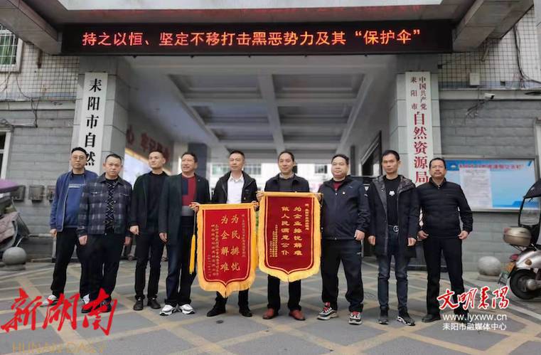 日前,耒阳市自然资源局迎来了一群特殊的客人——余庆街道办事处余冲村、南桥村村民代表和两家企业代表,他们将两面写有“为民排忧 为企解难”“为企业排忧解难 做人民满意公仆”的锦旗送到了国土空间用途管制股工作人员手中。