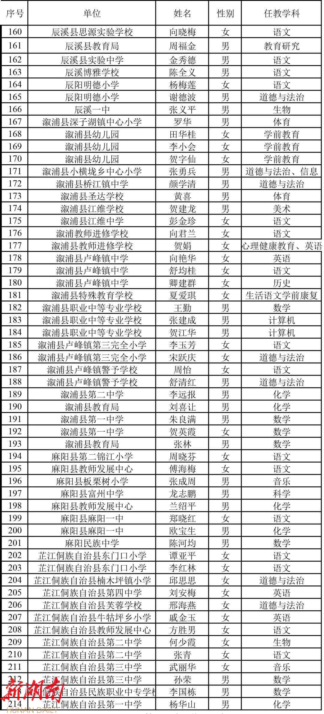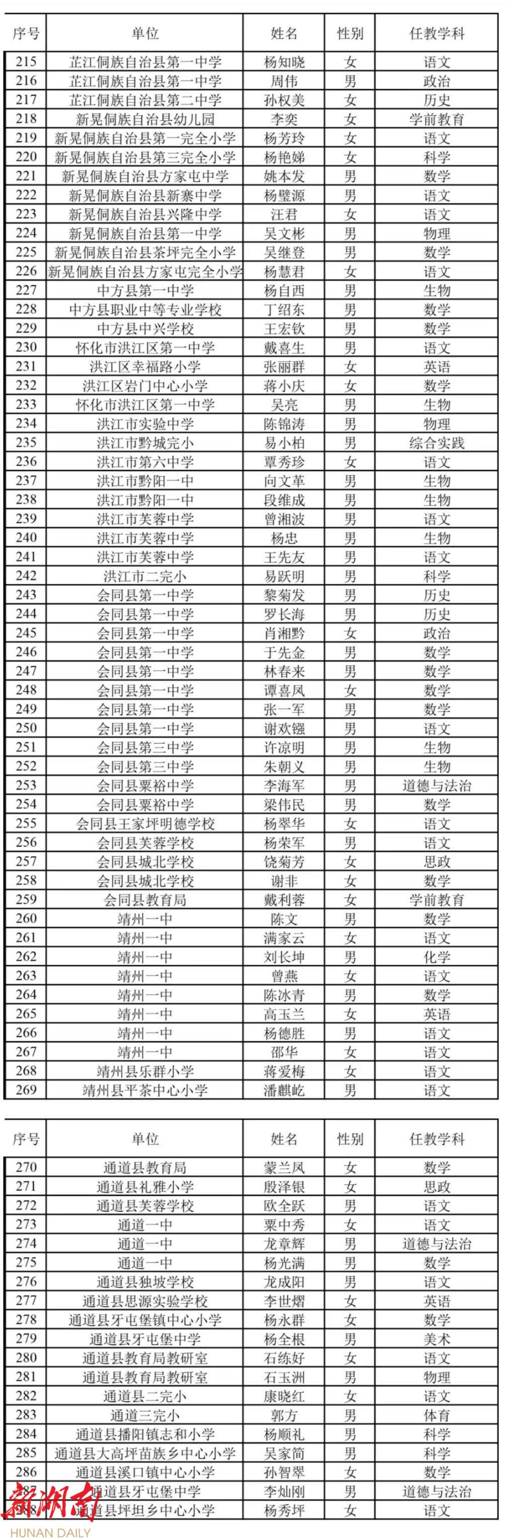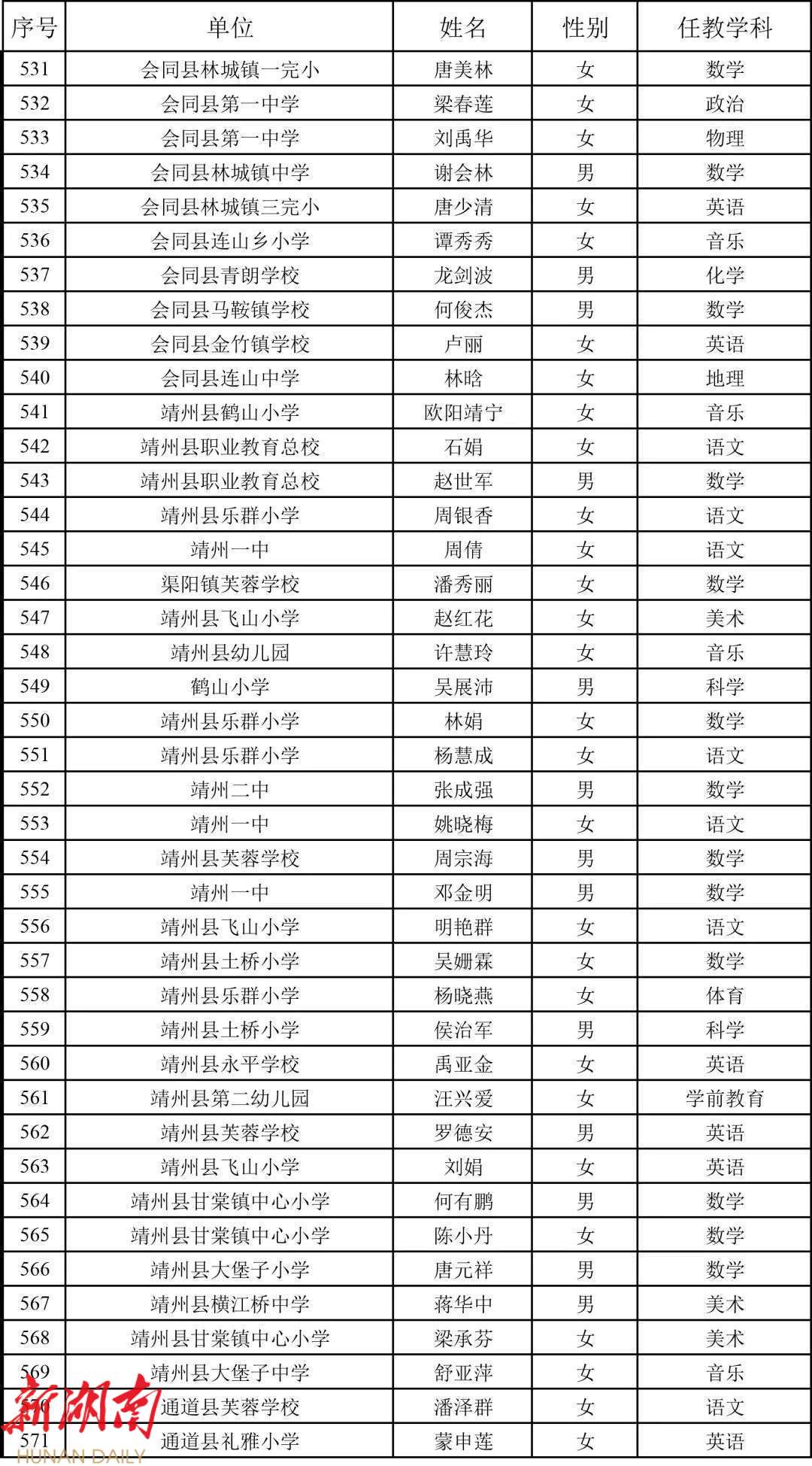 怀化市首届中小学骨干教师拟认定人员名单公示 共886名 靖州有这些老师……