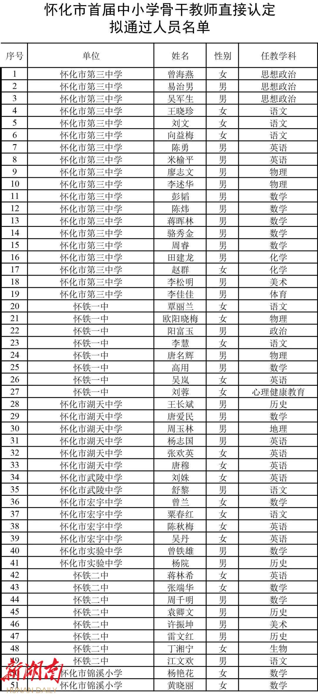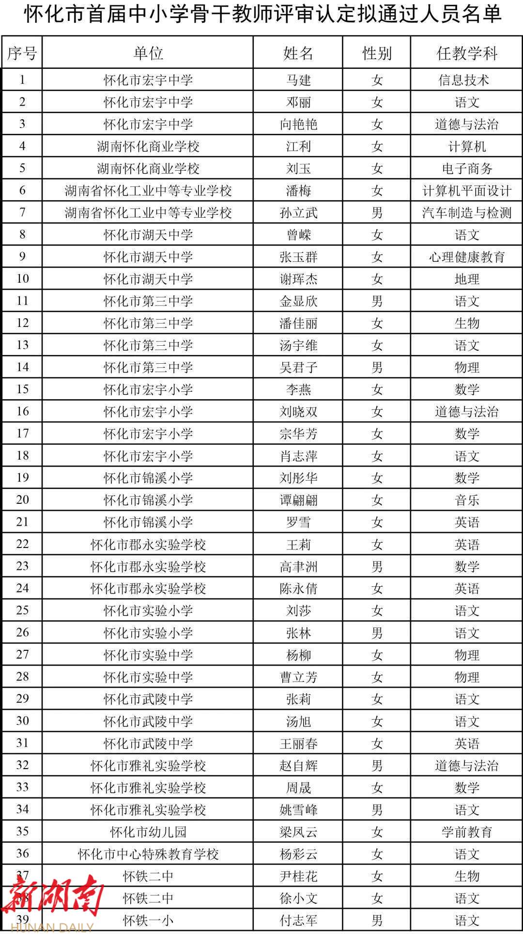 1.怀化市首届中小学骨干教师直接认定拟通过人员名单
