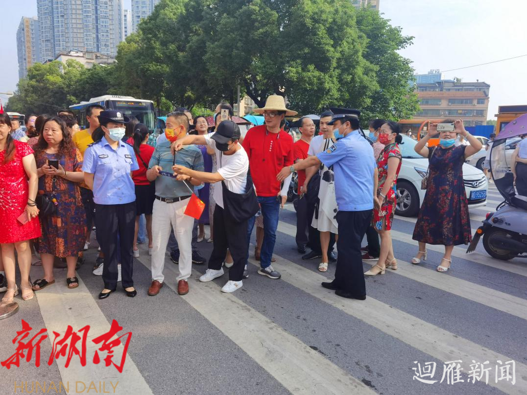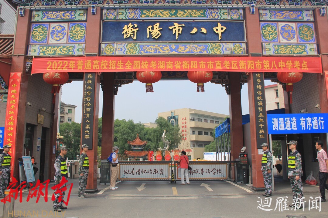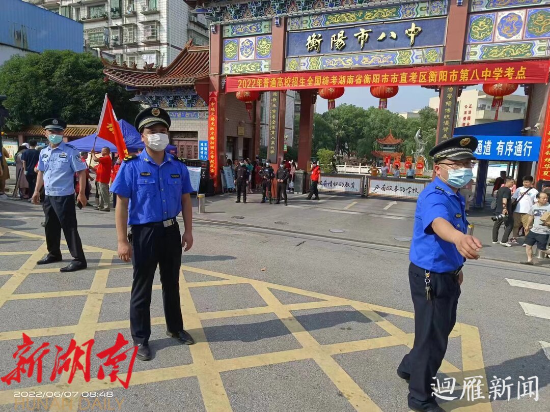 ▲雁峰城管执法人员在衡阳市八中校门处维持秩序