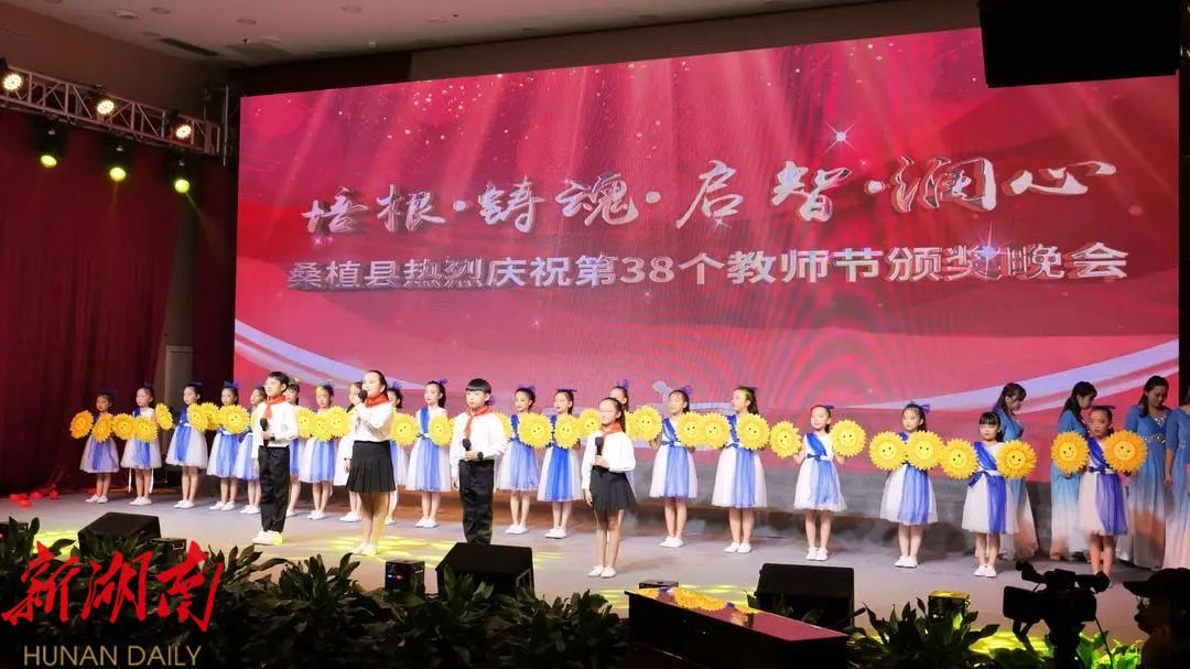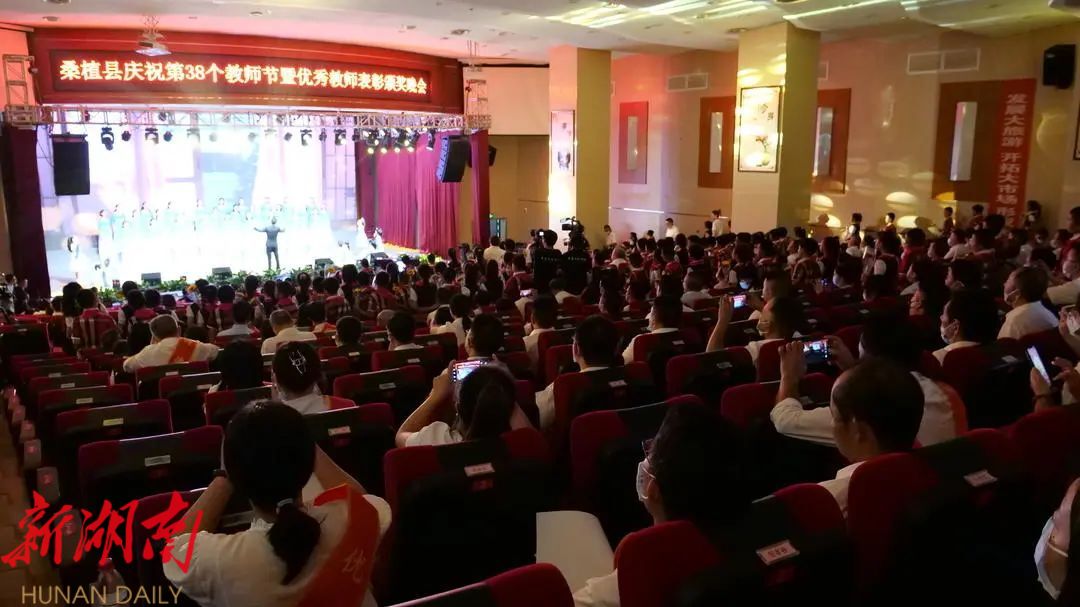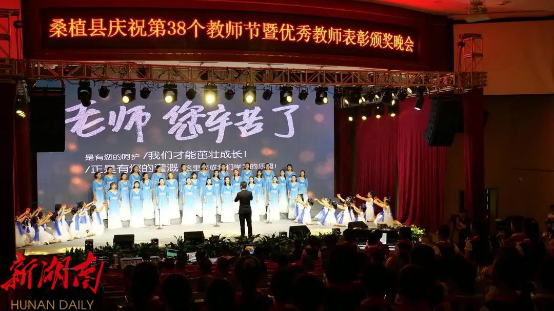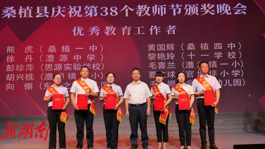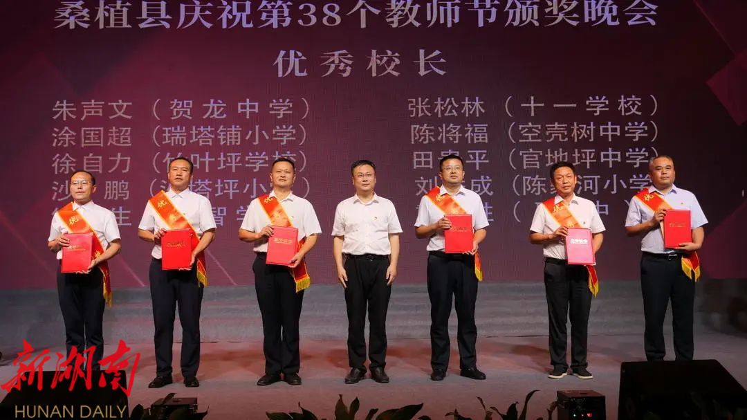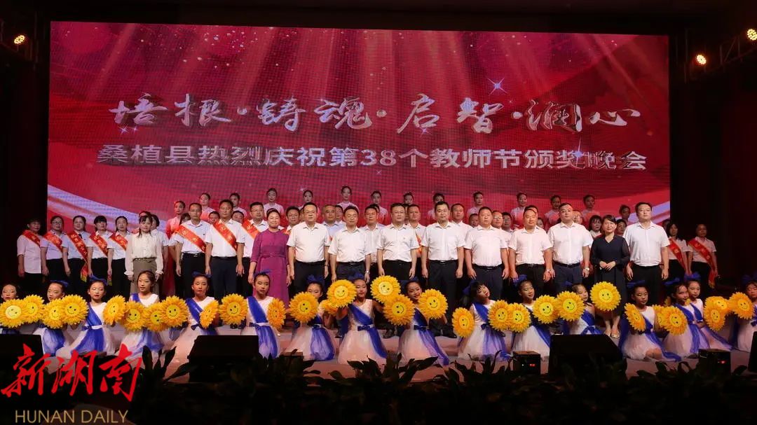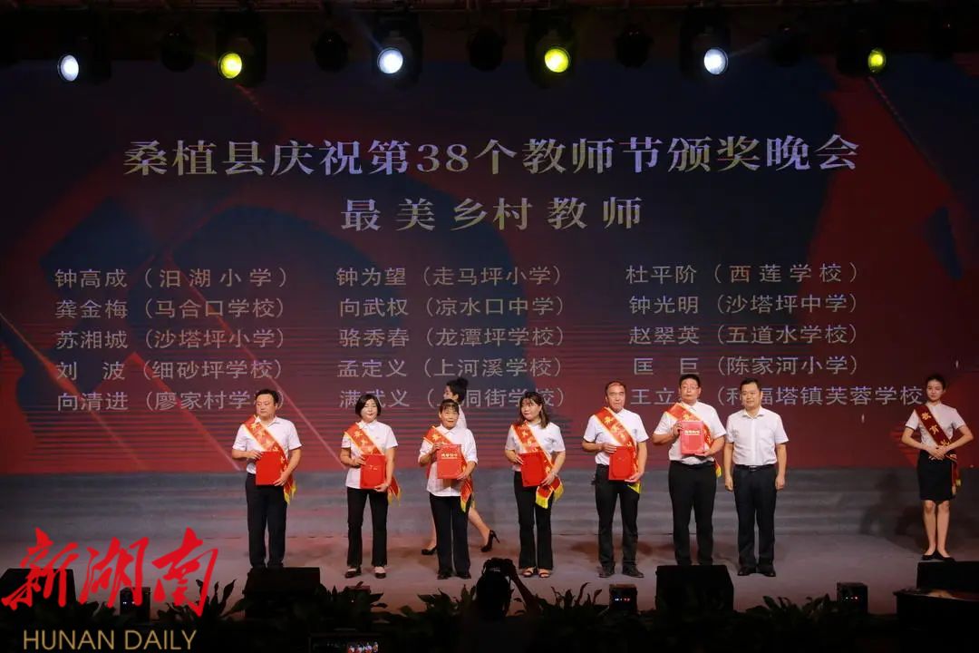 湖南日报·新湖南客户端9月10日讯(记者 杨柳 陈中化)9月9日晚,桑植县举行庆祝第38个教师节暨优秀教师表彰颁奖晚会,对160位优秀教师和教育工作者代表予以表彰。县委书记曹飞勉励全县广大教师和教育工作者始终牢记为党育人、为国育才使命,争做党和人民满意的好老师。县领导张冲、杨绍武、程持恒、钟照寰、陈星、王茂蓉、张金华、黎涛、龚召君出席晚会。