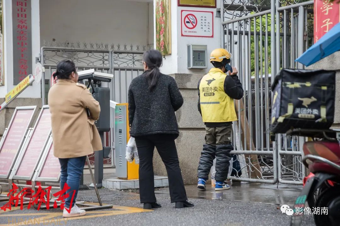 ▲学校地处乡间,周边没有商店,也不允许摆摊,一些没有时间过来的家长,有时会通过平台点外卖给孩子,但学校管理严格,并不允许外卖进校,外卖员只能掐着点从城区赶过来,在门外等待学生自己出来取餐。