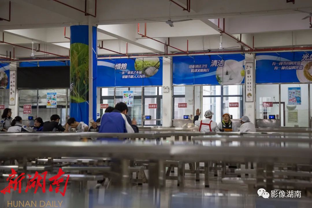 ▲在周日的送餐高峰期,往日繁忙的食堂,没有了学生来排长队,也没有匆忙的脚步,只有极少数没有家人过来的孩子在安静地就餐,几个工作人员也乐享清闲,坐在餐厅里闲聊。