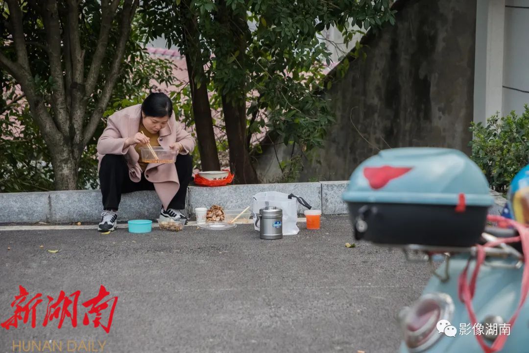▲校门口也常遇见陪读的家长来送餐,他们在学校附近的村民家租住一个简陋的单间,房费每月只需五百元左右,厨房是公用的,电费是自己的,每家的电表下都有一只小电饭锅,一日三餐在简陋的环境下却并不简单。