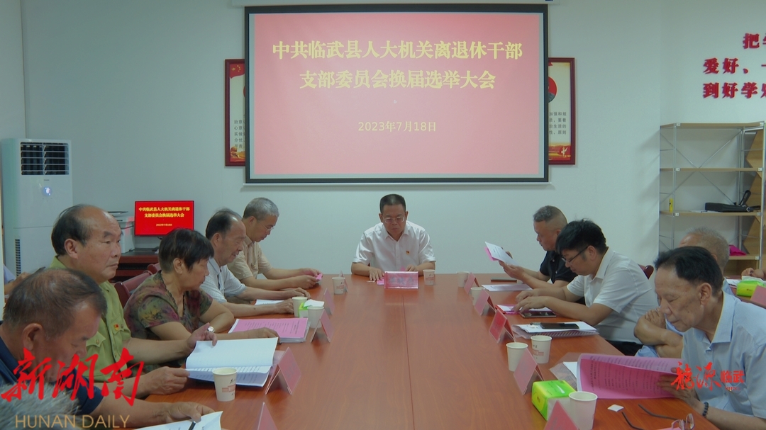 7月18日,临武县人大机关离退休干部支部委员会换届选举大会召开,选举产生新一届党支部领导班子,县人大常委会党组书记、主任谭晓亮参加会议 。