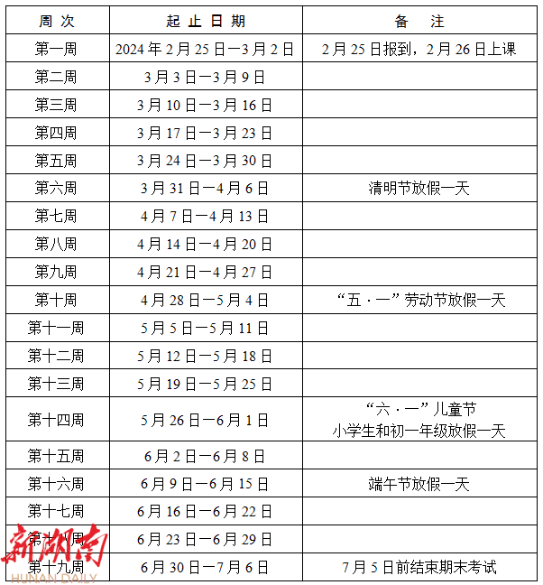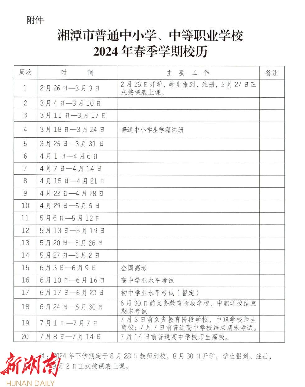 春季学期,全州中小学教职工于2月23日报到,2月23日至24日集中学习。学生2月25日报名,2月26日正式上课。普通高中(含职高对口升学班)可以提前至2月19日上课。