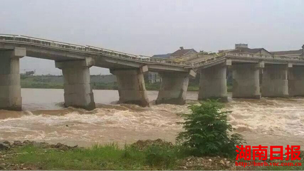 湖南日报6月4日讯(记者 王晴)受连夜暴雨袭击,6月4日凌晨省道306线在岳阳县筻口镇的一座大桥垮塌,目前交通已中断。
