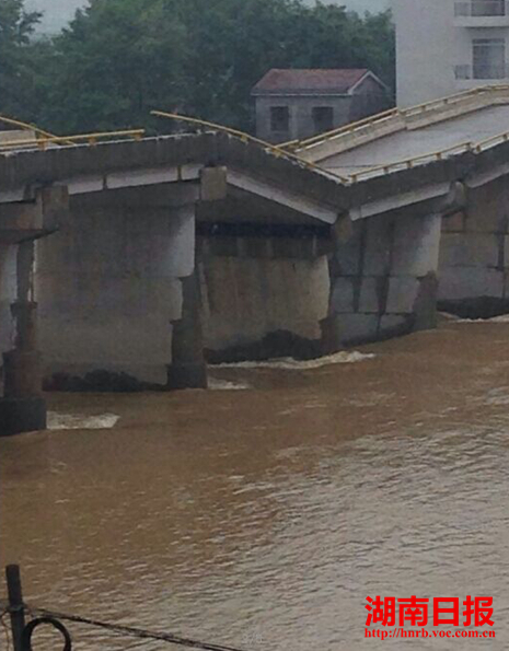 岳阳县境内一大桥垮塌 省道306线交通中断