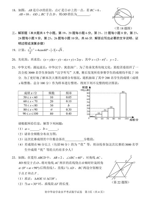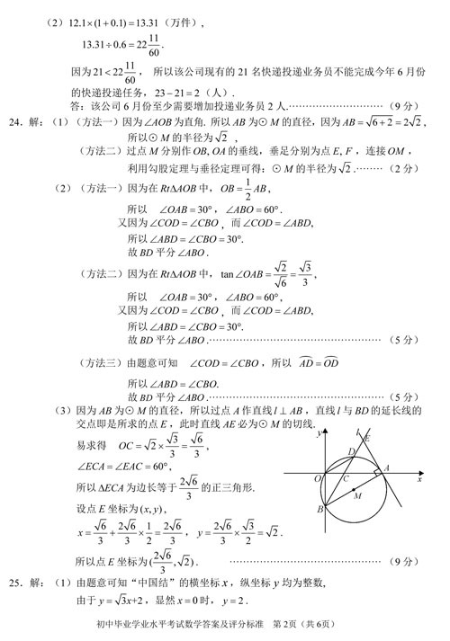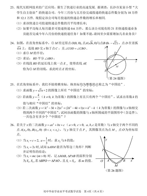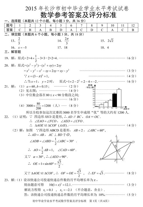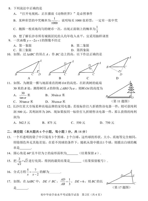数学A卷丨无线湖南权威发布2015长沙中考试卷答案