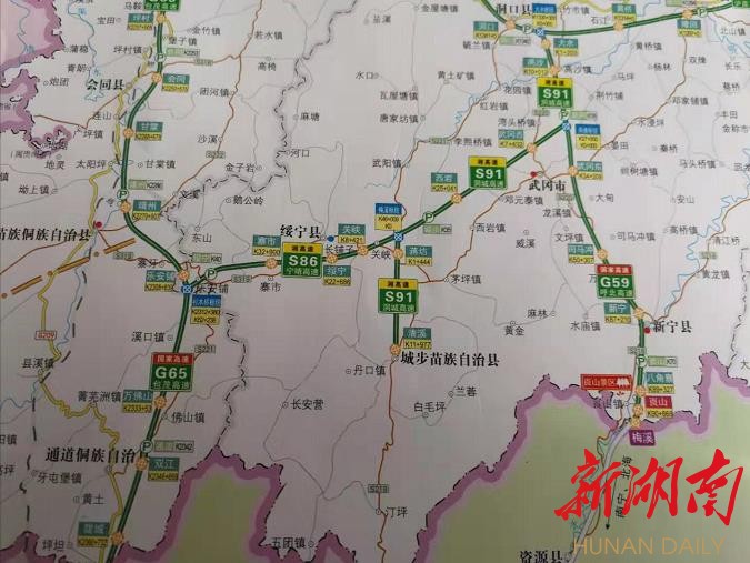 1.原S91洞新高速(洞口-新宁)65.865公里:两塘枢纽互通-新宁(湘桂界)升级为G59呼北高速(呼和浩特-北海高速),起止桩号为K2022+126m-K2087+991m。