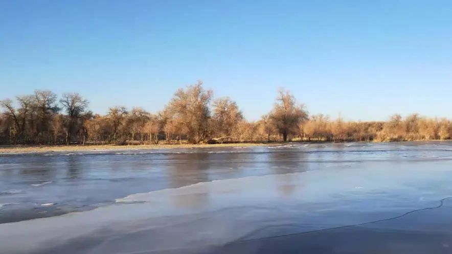 胡杨林旅游区,林中胡杨参天,倒影林、湖心岛、红柳林海,在冬日的蓝天白云的映衬下,闪烁出大自然赐予额济纳最绚丽的色彩。