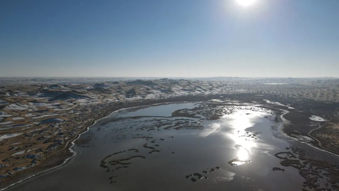 雪后的巴丹吉林沙漠“仙气”十足,热情不退。沙漠深处,有一处罕见的沙漠堰塞湖—大漠天池。