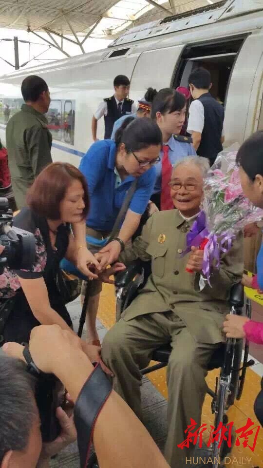 据了解,这次湖南共有13位老兵受邀参加抗战70周年纪念活动,11位老兵受邀入列阅兵方队,还有两位受邀分别参加阅兵观礼及招待会。在京期间,他们有的见到了老战友,有的拿拐杖当刺刀来怀想当年的战斗岁月,有的在阅兵敞篷车上激动不已。谈起这趟北京之行,他们说“特别开心”。