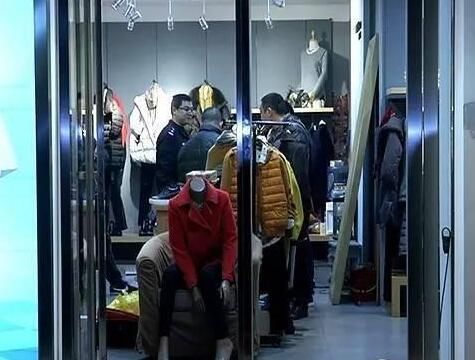 透过服装店的玻璃门,记者注意到,店内摆满了各种衣服和鞋子,试衣间靠近店子最里面,地上散落着一个塑料袋,里面有少许杂物。