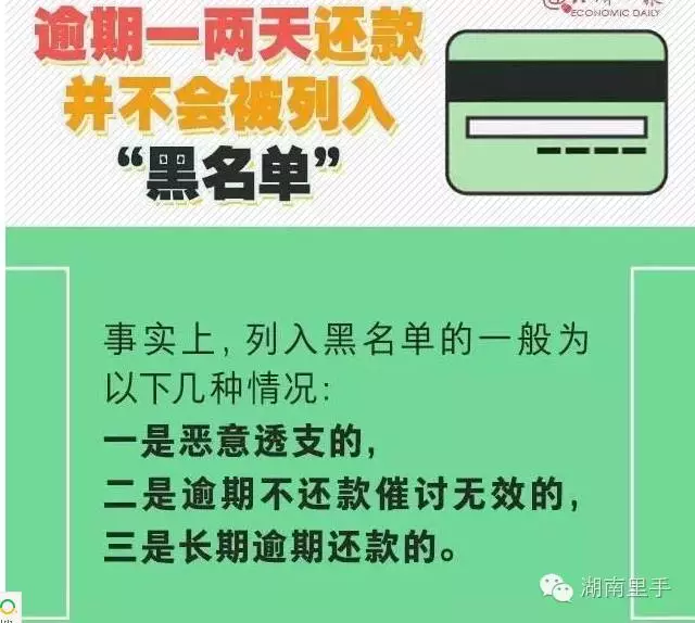 在银行的个人信用不良记录周期由5年提升为7年;信用卡、个人贷款等还款超过1天即为逾期,连续逾期三次者就将被拉入黑名单!