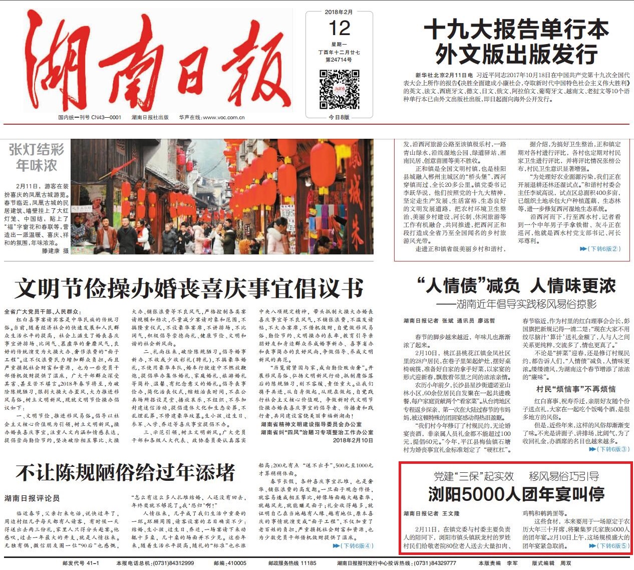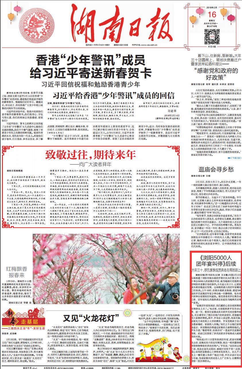 (2018年2月16日刊载于《湖南日报》01版)