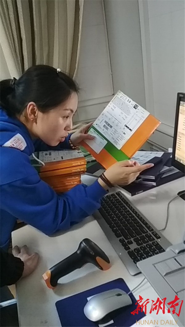 设备科工作人员在认真核对扫码录入的信息