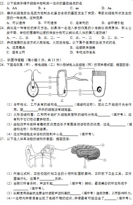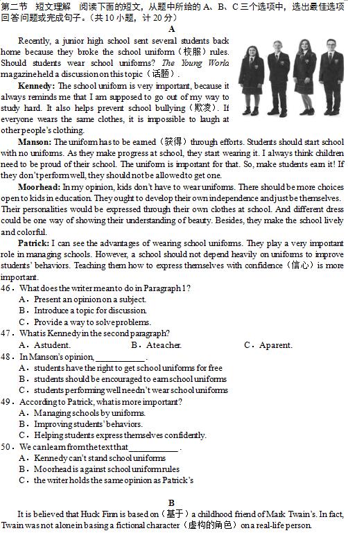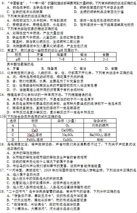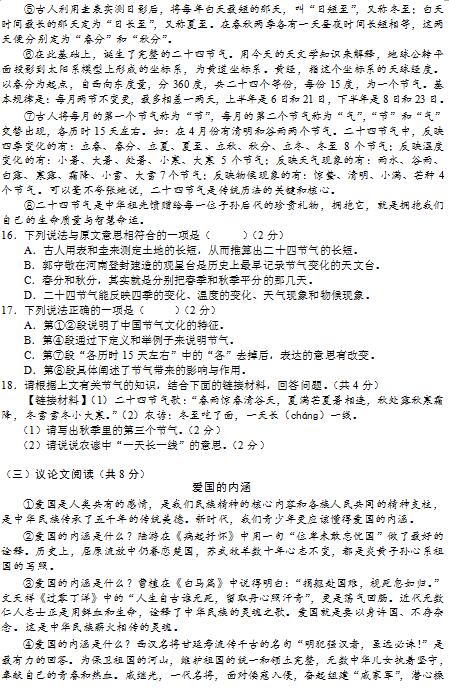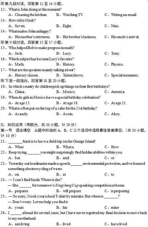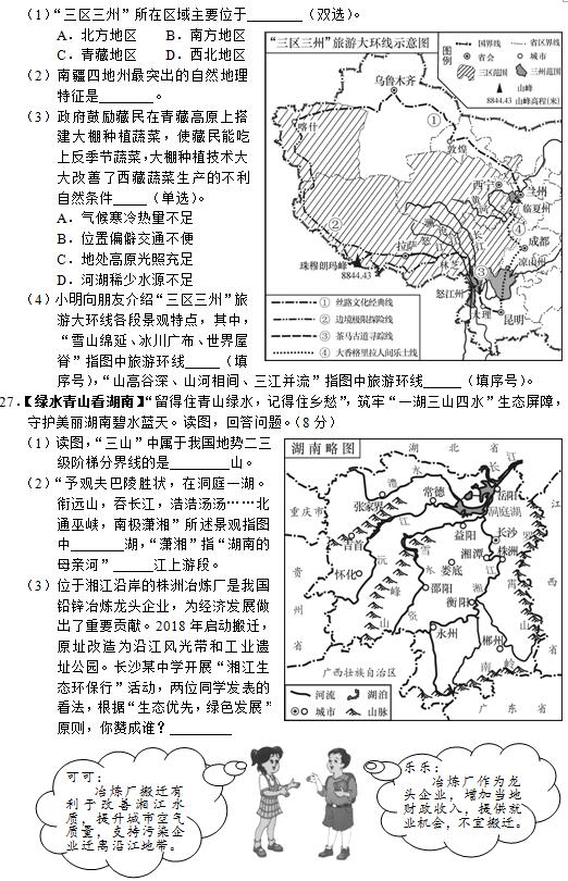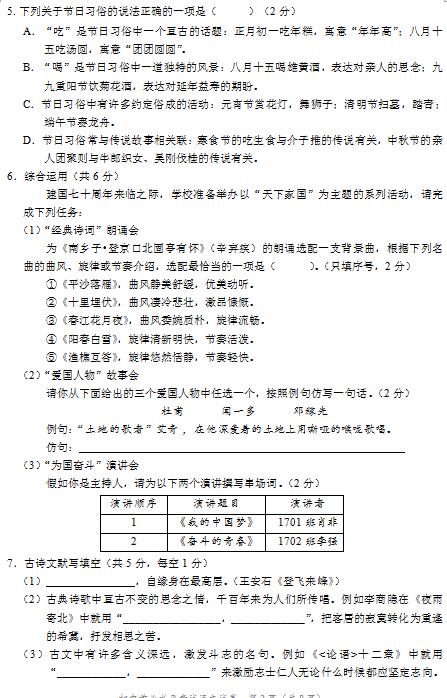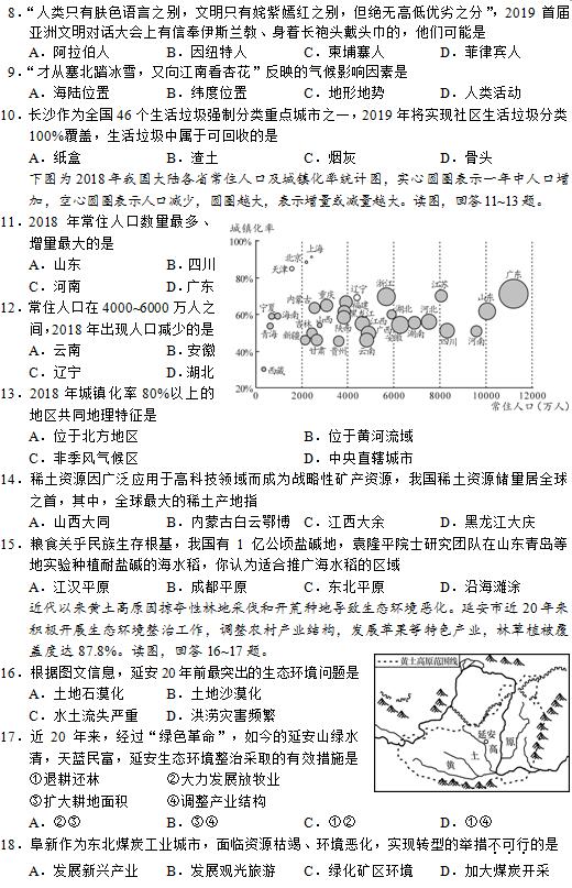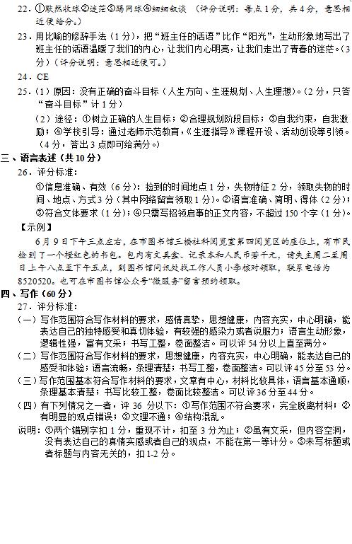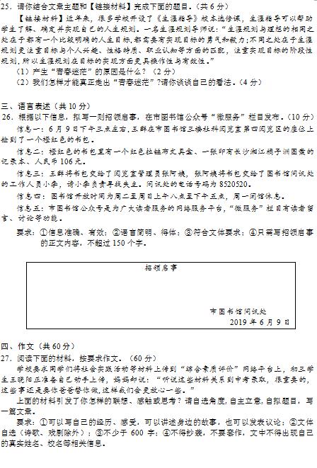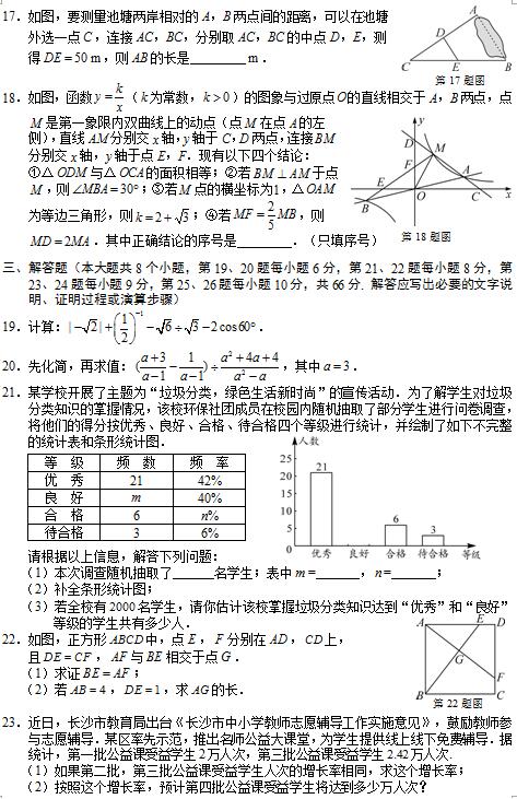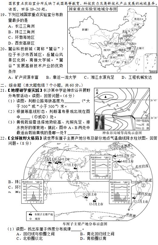 2019年长沙市中考试卷及参考答案公布