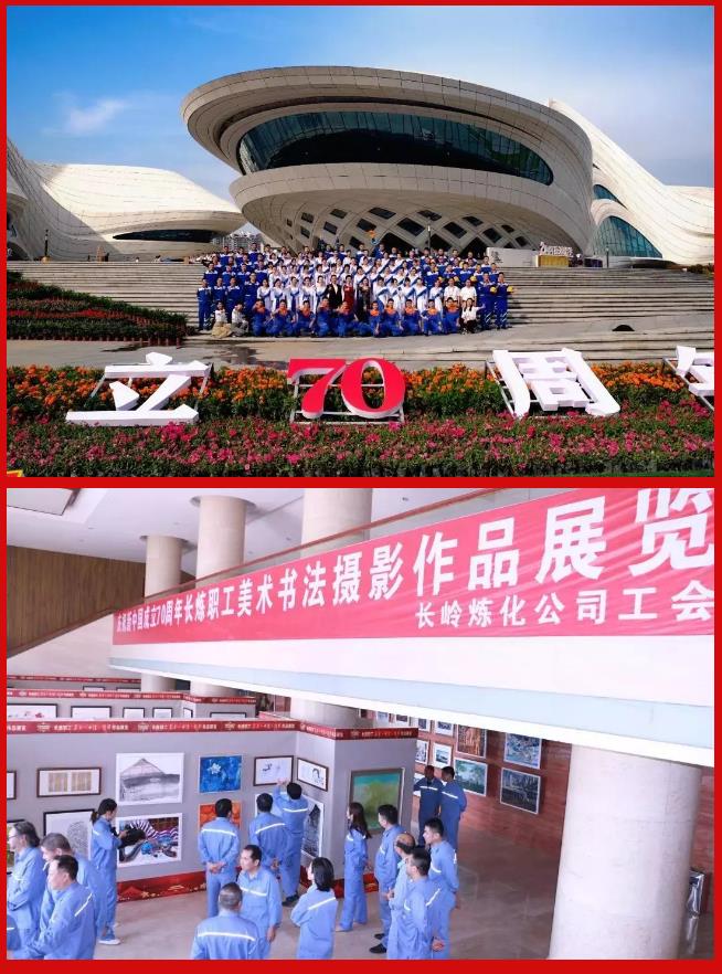喜迎新中国成立70周年大庆,干部员工欢欣鼓舞,振奋精神坚守岗位,以实际行动向祖国献礼。公司美化亮化地区环境,营造喜迎国庆浓厚氛围,积极组织红歌会、书画展、座谈会等活动,合唱队精心排练,一曲《我为祖国献石油》荣获“我和我的祖国 湖南百万职工同声唱”总展演人气金奖。内部媒体统筹部署,开办“壮丽七十年 奋斗新时代”、“我和我的祖国”等栏目,组织系列深度报道,系统回顾公司改革发展成就,刊发员工见证祖国发展变化的所见所感,激发干部职工家国情怀。积极做好对外宣传报道,展示公司发展成就,宣传企业良好形象,专题报道《长炼:洞庭明珠辉映江南》累计传播人次过百万,社会影响得到较大扩展。