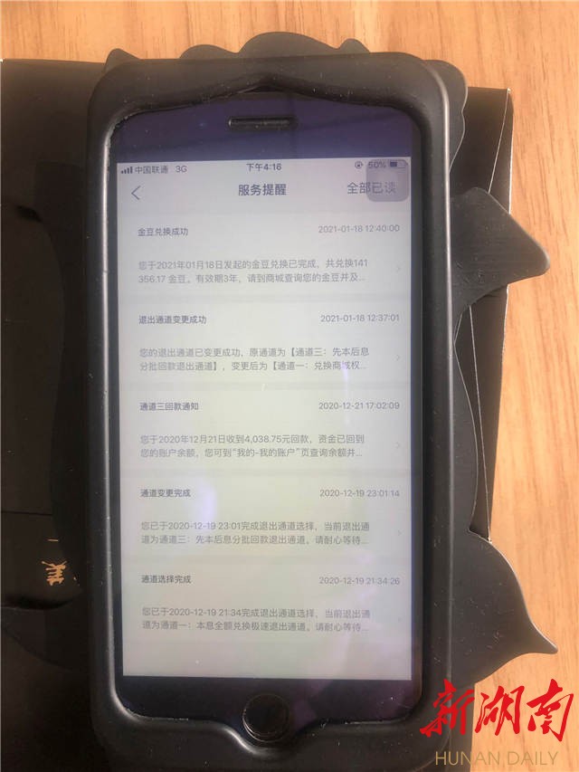 4月19日,记者陪同被理财APP侵吞了近五十万元的李女士前往长沙市公安局候家塘派出所报案。两年多前,她下载了“悟空优选”、“PP money”等两款手机理财APP进行理财,投入本金三十多万元,按约获息十万左右,从去年下半年开始全部被冻结在平台,再也拿不出来了。