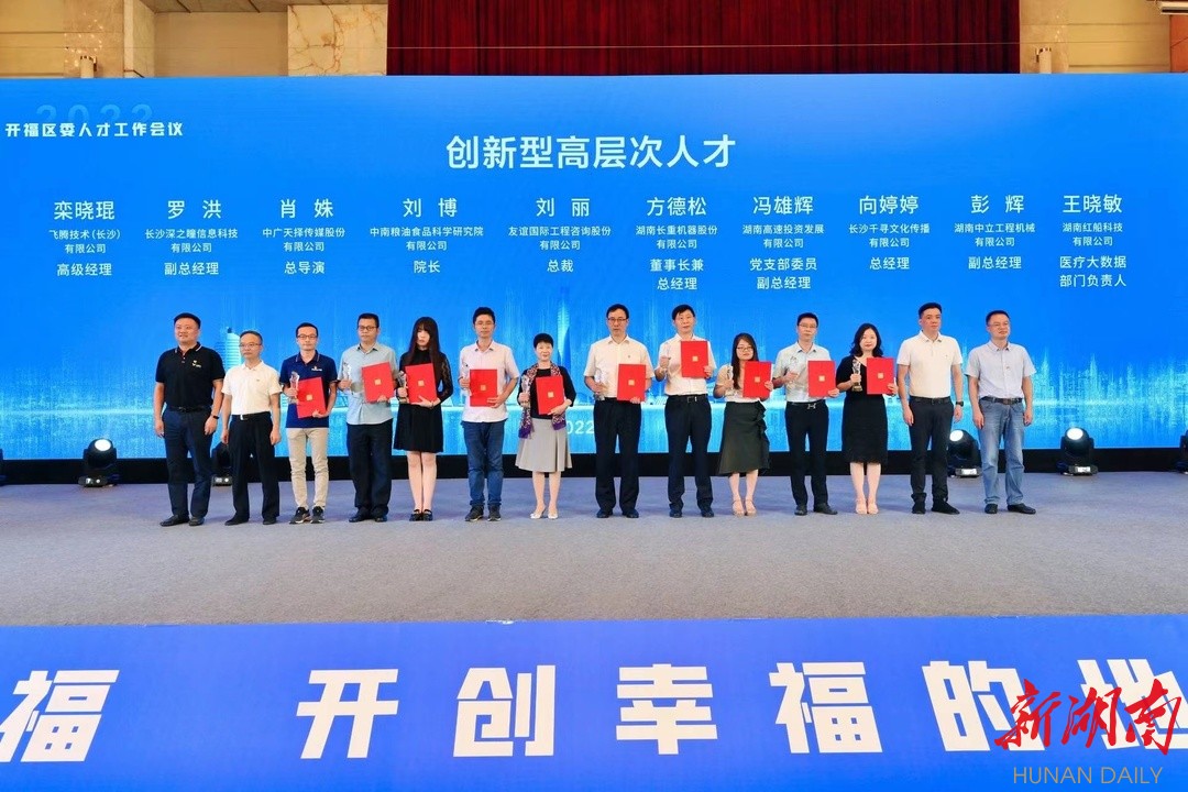 会议发布了“开福合伙人”倍增计划。即到2025年,开福区人才总量突破28万人,全社会研发经费投入年均增速达15%,每万人口高价值发明专利拥有量40件,重点培养、引进党政人才500名,产业领军人才50名,创新型高层次人才500名,实用型骨干人才5000名,技能型青年人才50000名。实现区域人才体量、人才实力、人才效益的三个倍增。