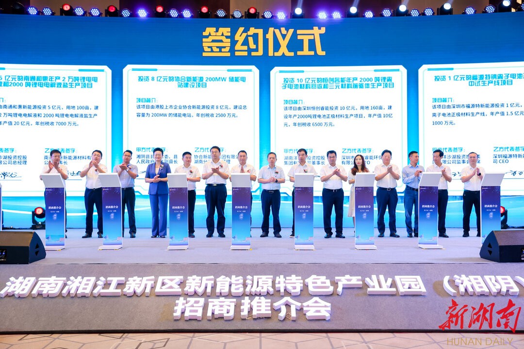 湖南日报·新湖南客户端8月26日讯(记者 周磊 通讯员 梁军)今天,湖南湘江新区新能源特色产业园(湘阴)招商推介会在长沙市举行。13个新能源产学研合作及金融赋能项目、新能源产业项目现场签约,总投资89亿元。