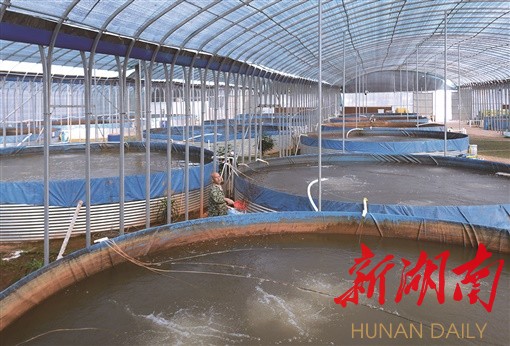 (靖港镇杨家山村海氏渔业基地。“渔业院士”刘少军在这里对优质淡水鱼资源和优质品种进行保种、改良、推广等工作,实现产学研融合。)