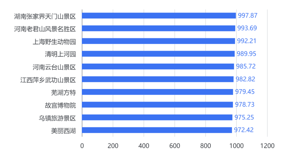 其中抖音传播力指数,张家界天门山景区以997.87分拔得头筹。