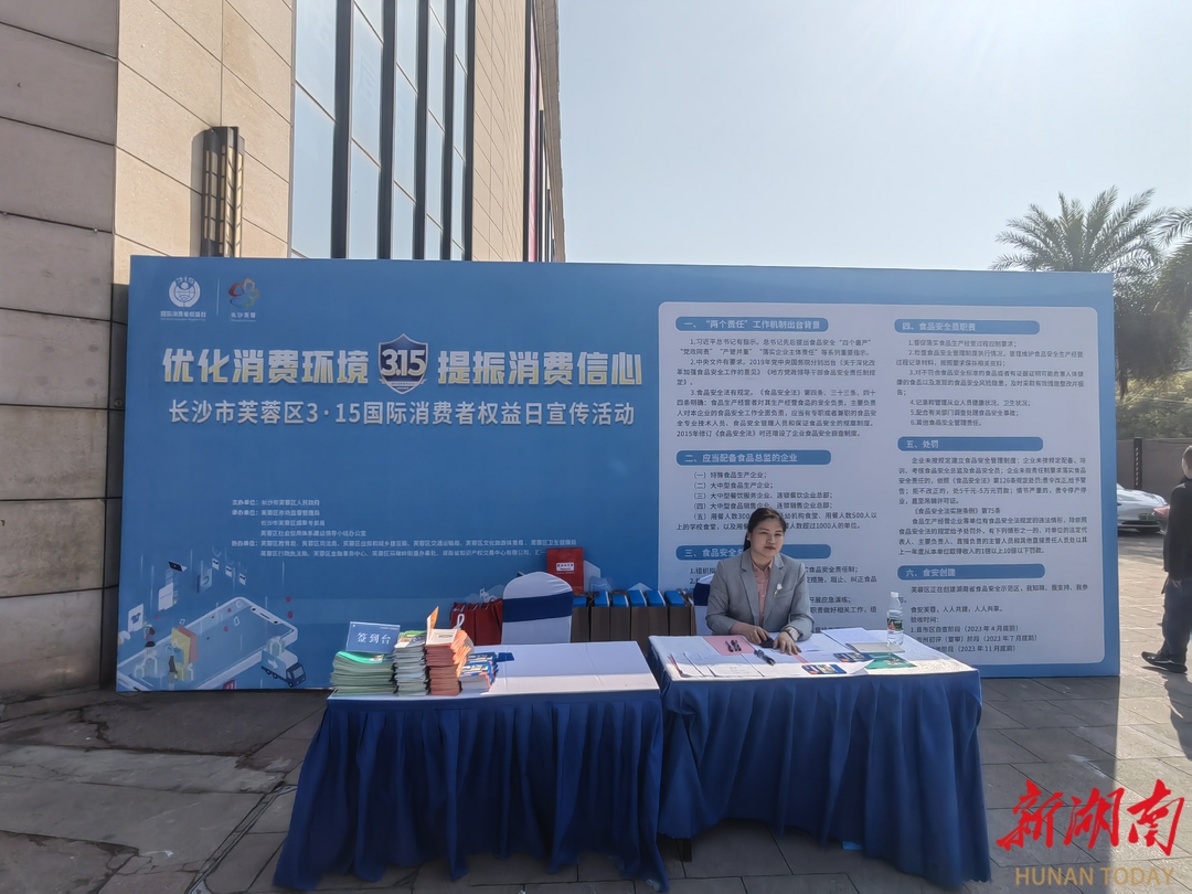 湖南日报·新湖南客户端3月15日讯(记者 李治 通讯员 黎婷)今天上午,以“优化消费环境 提振消费信心”为主题的长沙市芙蓉区“3·15”国际消费者权益日宣传活动在汇一广场举行。