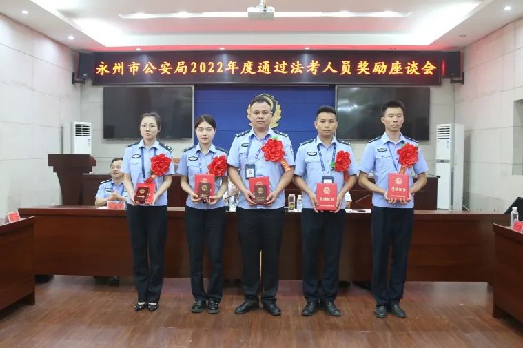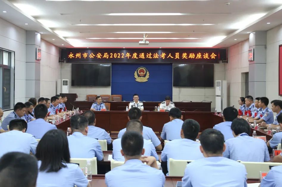 湖南日报·新湖南客户端8月5日讯(通讯员 永公宣)8月4日,永州市公安局召开2022年度通过法考人员奖励座谈会。市人民政府副市长、市公安局长车丽华出席并讲话,市公安局党委委员、副局长周礼功主持并宣读奖励命令。市公安局党委委员、政治部主任义盛章出席会议。