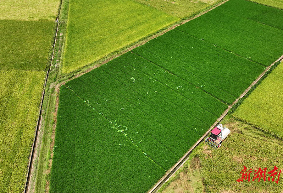 8月18日,衡阳县台源镇台九村,村民驾驶农机在收割中稻。近年,该村对稻田采取“冬油菜+中稻”和“早稻+晚稻”分批次轮作,有效地利用了人力和农机设备,做到一年四季田不空、人不闲,提高土地和劳动力的利用率,帮助农民生产增收。 曹正平 刘欣荣 摄影报道
