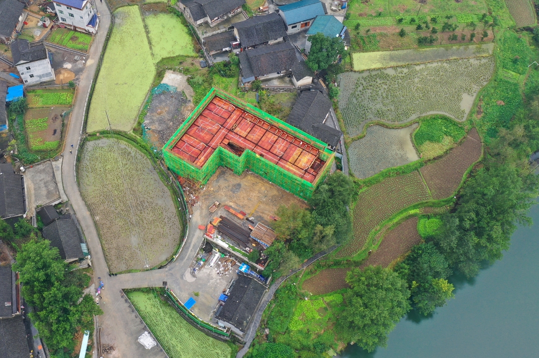 ▲边区两地群众义务投工投劳,修缮磨老小学