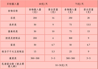一位50公斤体重的老年人,按每日摄入1.2~1.5克/千克蛋白质的参考食谱。