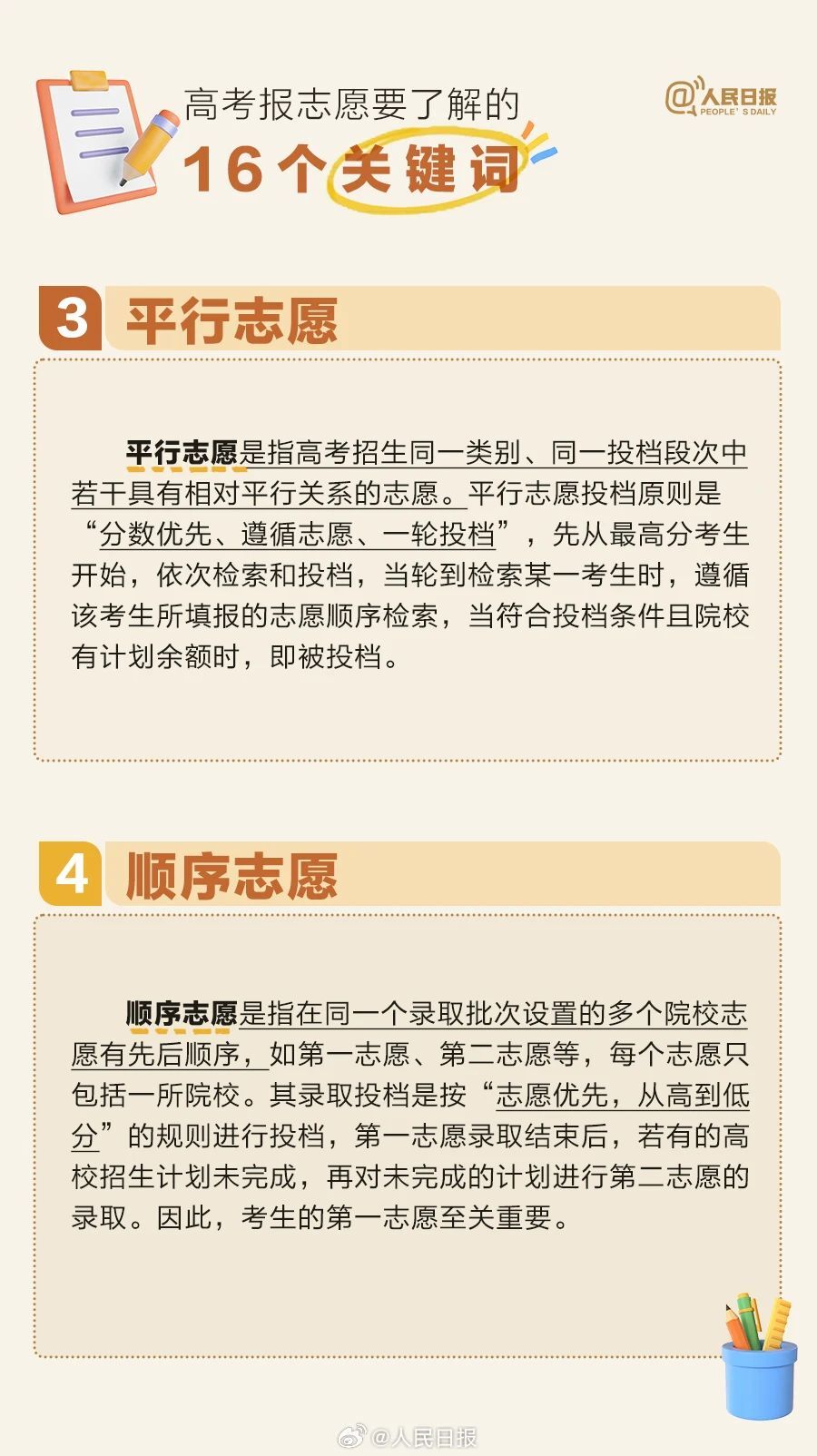 2024年高考已落下帷幕,考生即将面临志愿填报。什么是批次录取控制分数线?什么是院校调档分数线?平行志愿和顺序志愿有什么区别?16个关键词了解高考志愿填报↓↓