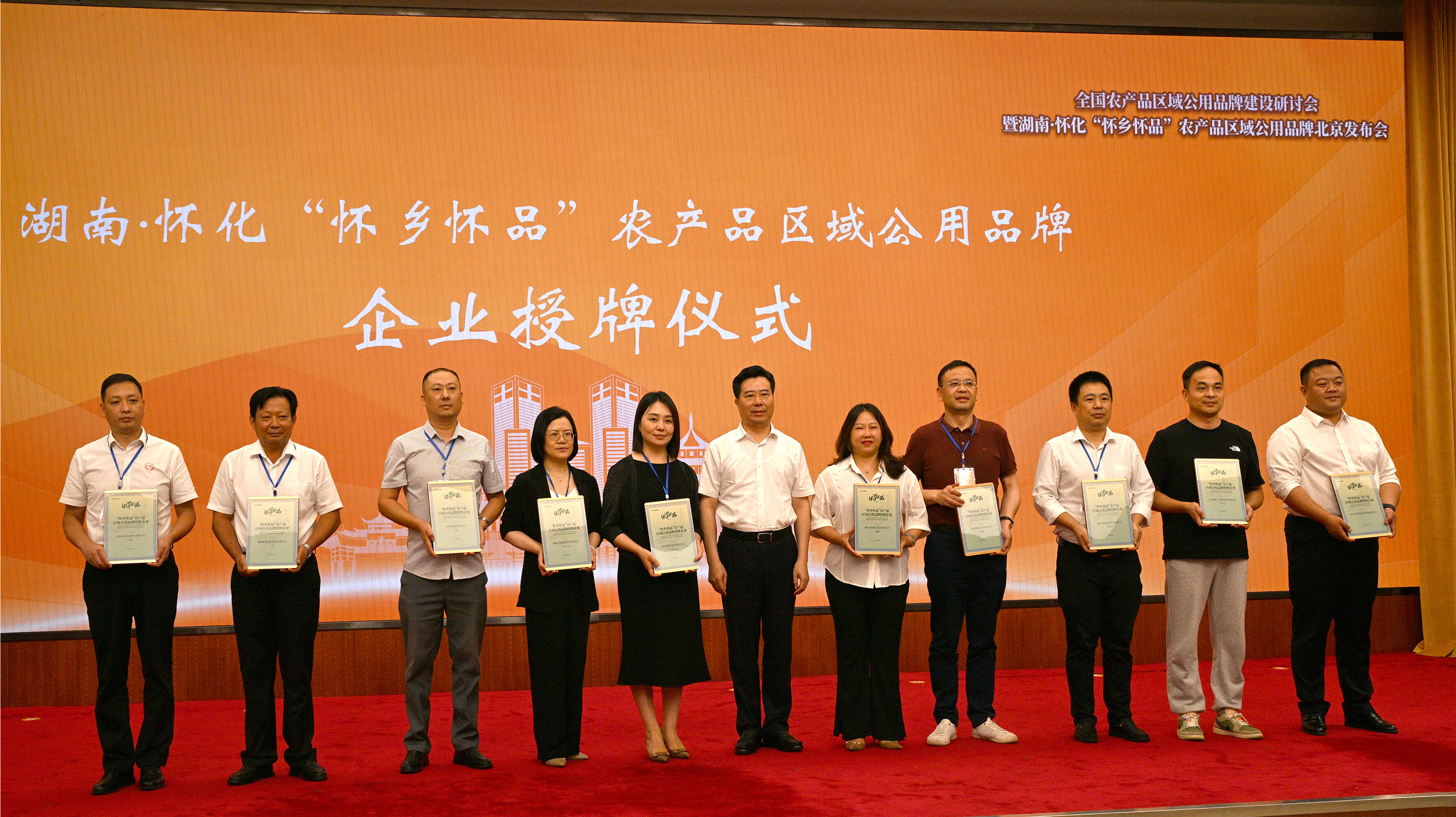 6月22日,在全国农产品区域公用品牌建设研讨会暨湖南·怀化“怀乡怀品”农产品区域公用品牌北京发布会上,怀化农林发展投资集团有限公司、补天健康产业控股集团有限公司、湖南博世康中医药有限公司、湖南海联食品有限责任公司、麻阳蓝凤凰农业发展有限公司、新晃老蔡食品有限责任公司、湖南沅陵碣滩茶业有限公司、怀化盛源油脂有限公司、湖南奥谱隆科技股份有限公司、湖南沅陵大曲酒业有限公司成为首批授权使用“怀乡怀品”农产品区域公用品牌的企业。