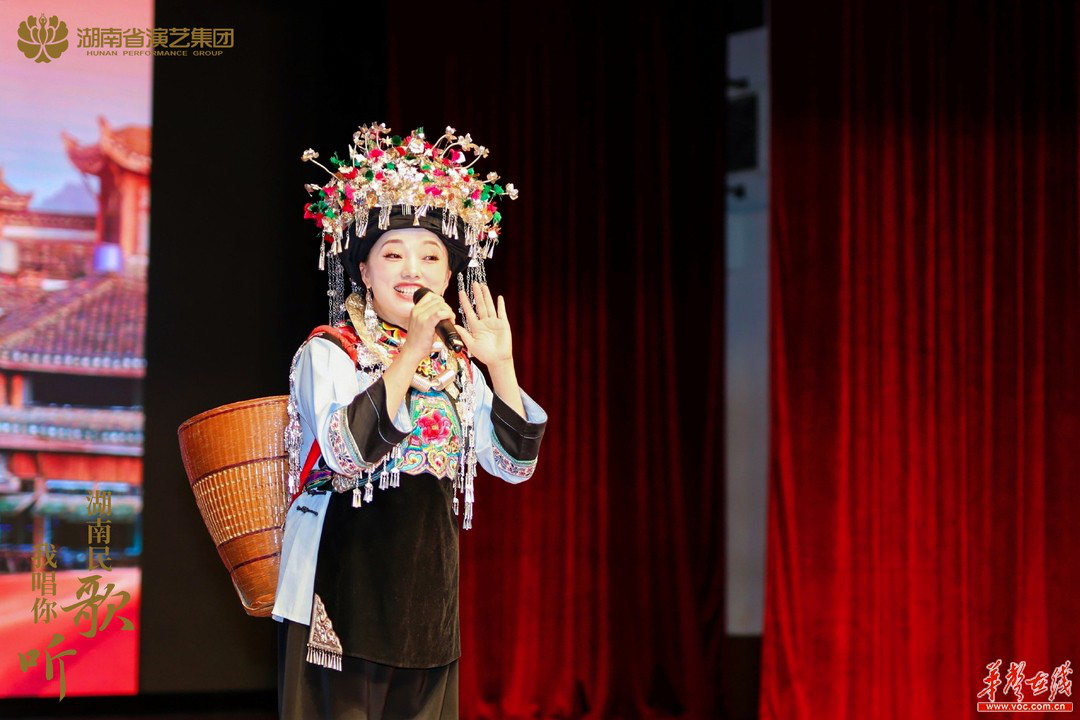 (非遗传承人吴廷翠现场开唱。图片由湖南省演艺集团提供)