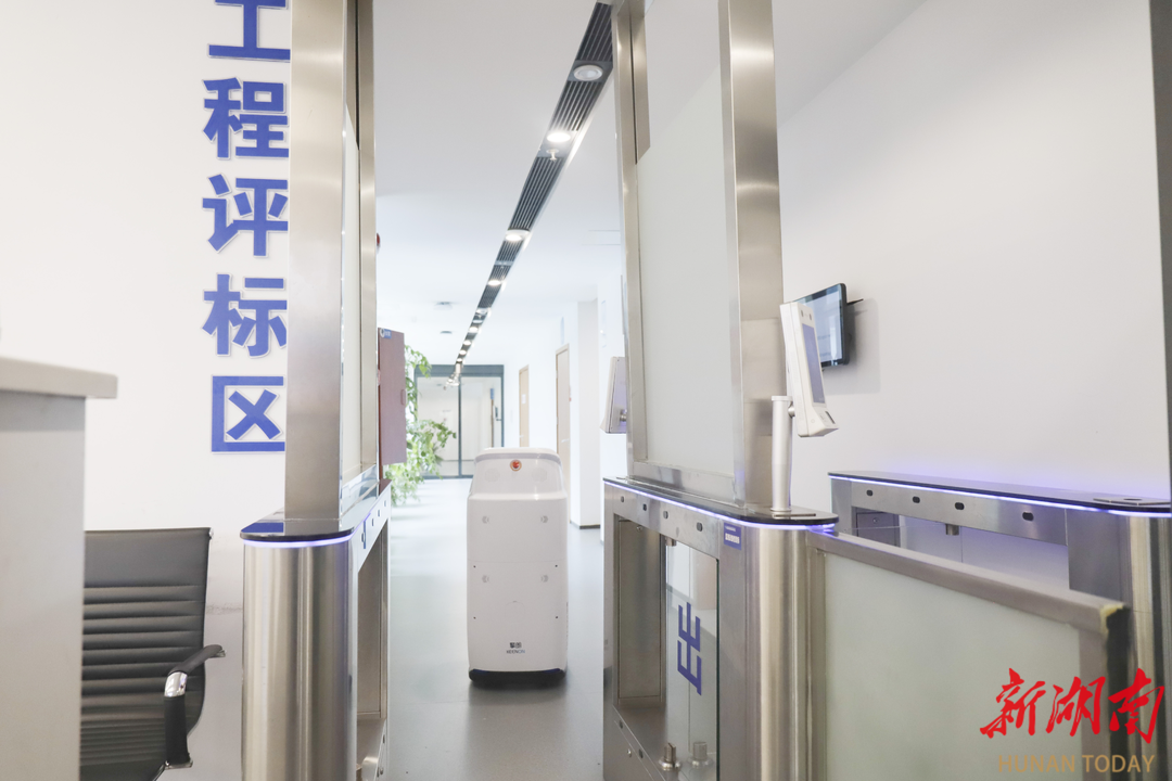 常德市公共资源交易中心内,一台智能送餐机器人有条不紊地穿梭于评标区域。通过与评标区门禁系统的互联互认,该机器人能够根据专家的点餐需求,自动规划路径并控制门禁闸机进入指定区域完成送餐。
