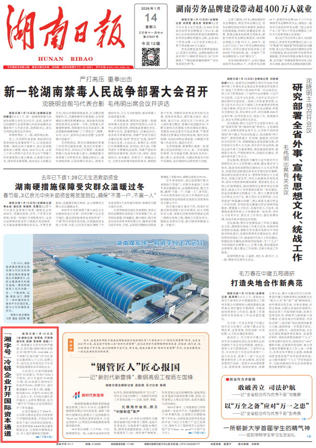 湖南日报·新湖南客户端1月13日讯(记者 曾楚禹 万丽君 通讯员 陈静 李牧婷 徐磊)今天,香港联合交易所内钟声激荡,红星冷链(湖南)股份有限公司(股票代码:1641.HK,以下简称“红星冷链”)作为红星实业集团核心子公司,正式挂牌上市,成为长沙市雨花区今年首家登陆香港资本市场的企业。公告显示,红星冷链每股定价12.26港元,共发行2326.3万股份。此次上市,不仅标志着红星冷链迈入全新发展阶段,也为“湘字号”冷链企业走向国际打开了资本通道。