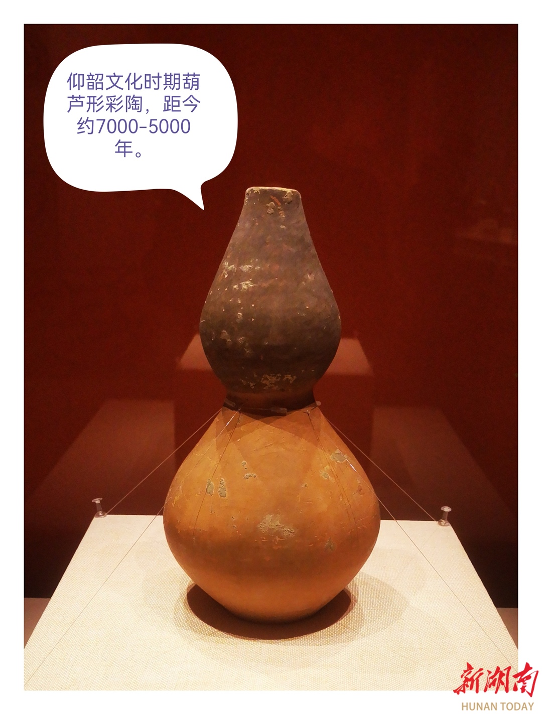 “陇原玫瑰——甘肃彩陶文化展”,是湖南省博物院新年绽放的第一展,展出的210件稀世文物,呈现了一段悠远、灿烂、延续五千多年,从未曾间断的甘肃彩陶文脉,令人叹为观止。有一件史前仰韶文化时期的葫芦形彩陶瓶,夺人眼球,吸引众多观者驻足。