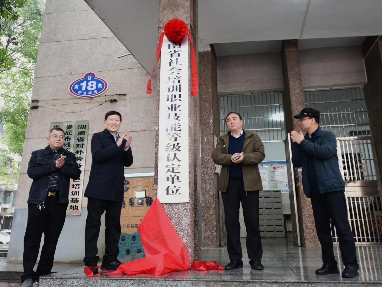 本网讯 3月15日,娄底职院在继续教育学院前坪举行省级职业技能等级认定基地揭牌仪式,娄底市人社局副局长曾春谷,副校长龙国锋共同为娄底职院成为“湖南省院校职业技能等级认定单位”和“湖南省社会培训职业技能等级认定单位”揭牌。娄底市人社局鉴定中心主任邹解提,娄底市人社局职业能力建设科科长谢金玲,娄底职院继续教育学院及二级学院相关负责人参加揭牌仪式。
