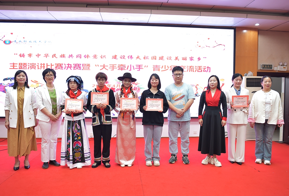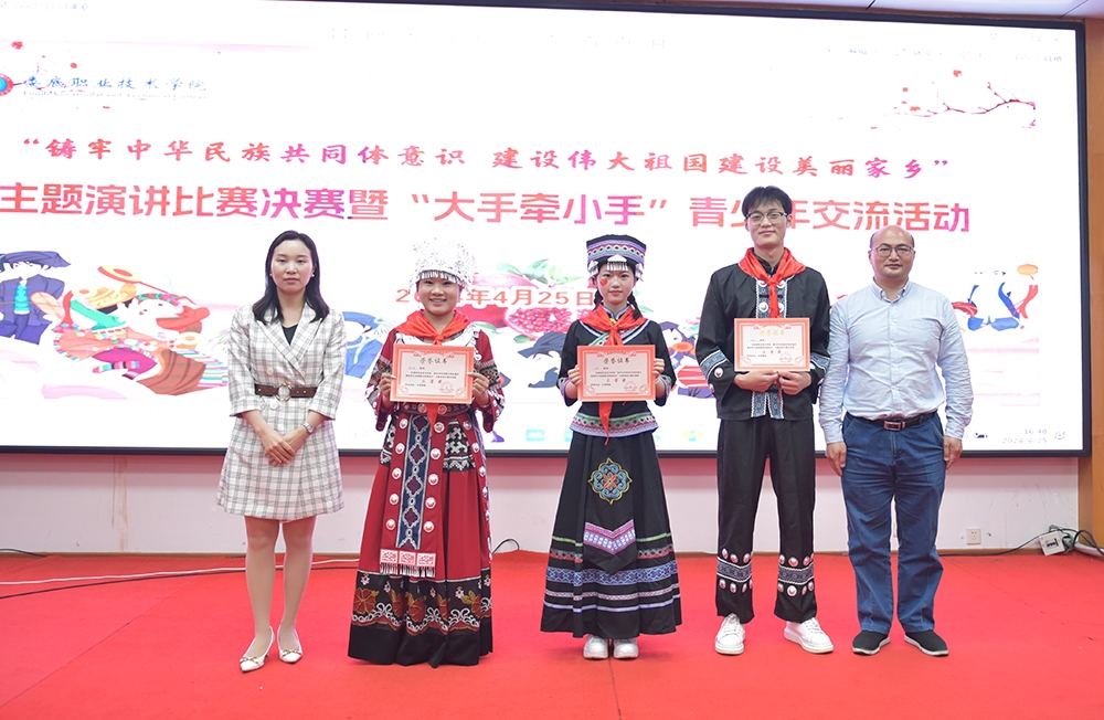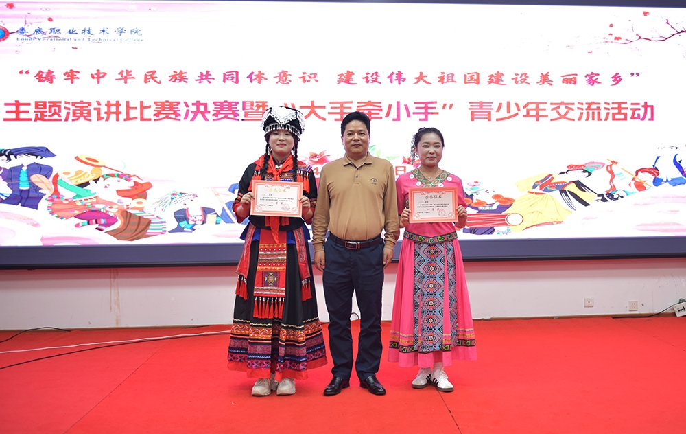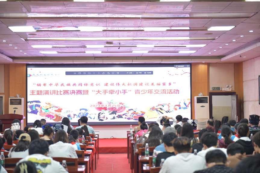 为引领学生铸牢中华民族共同体意识,展现少数民族学生良好精神风貌,4月25日下午,娄底职业技术学院“铸牢中华民族共同体意识建设伟大祖国建设美丽家乡”主题演讲比赛决赛暨“大手牵小手”青少年交流活动在该校第一教学楼报告厅举行。党委委员、副校长申晓伟,校党委宣传统战部部长王宗凡,团委书记石磊,宣传统战部副部长刘艳,市委统战部民族科科长王璨琛,娄星区民宗局民宗组组长胡国栋到场观摩比赛。学校各二级学院学工副院长、师生代表,娄底市一小师生代表共同观看比赛。