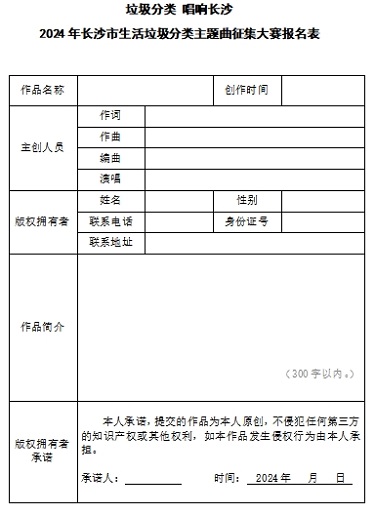 参赛者须将如下资料一并发送至指定邮箱,邮件主题:“垃圾分类唱响长沙-歌曲名”。