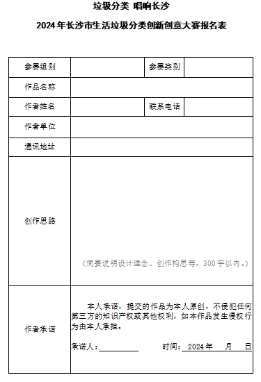 2024年长沙市生活垃圾分类创新创意大赛暨宣传品牌征集活动参赛报名表