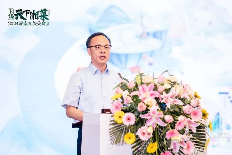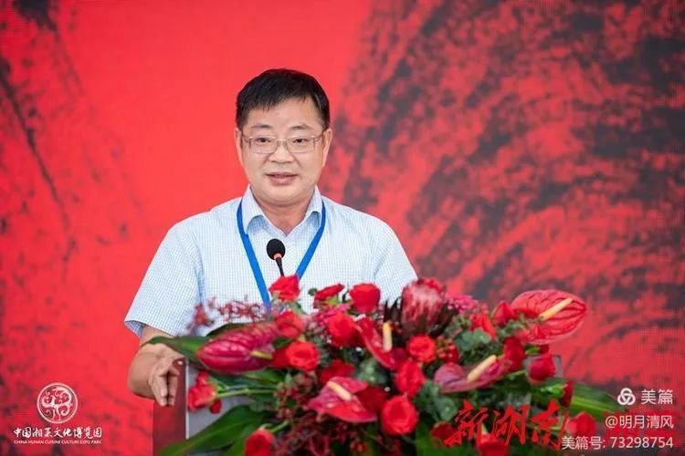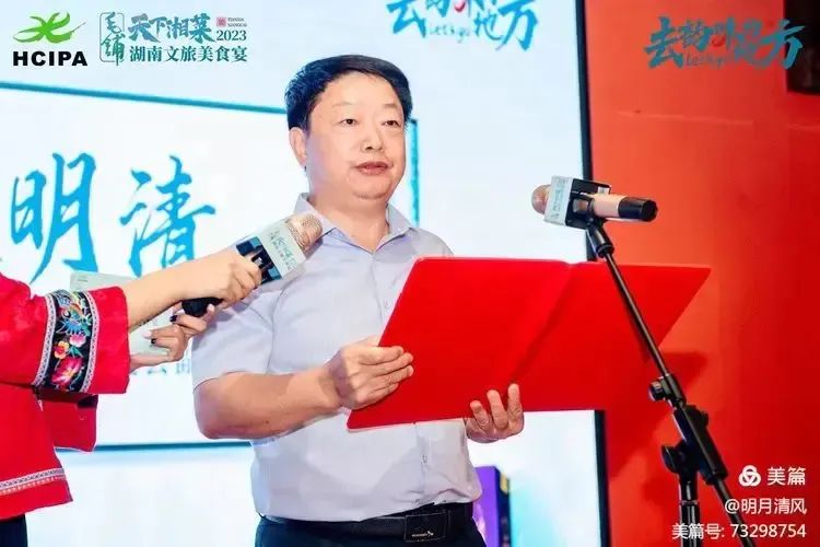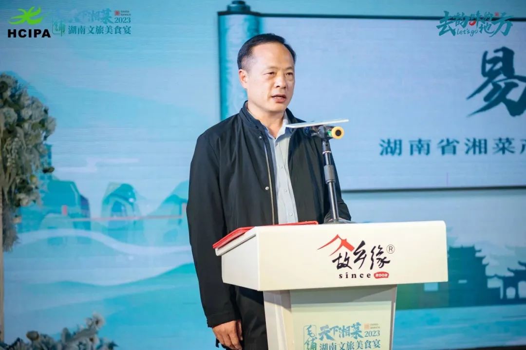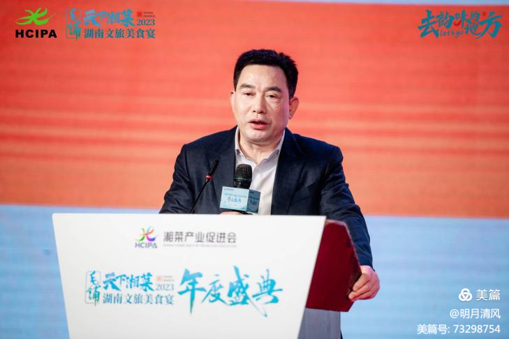 湖南省湘菜产业促进会张明清先生,代表省促进会在湘西州湘菜文旅美食宴启动式上致辞。↓