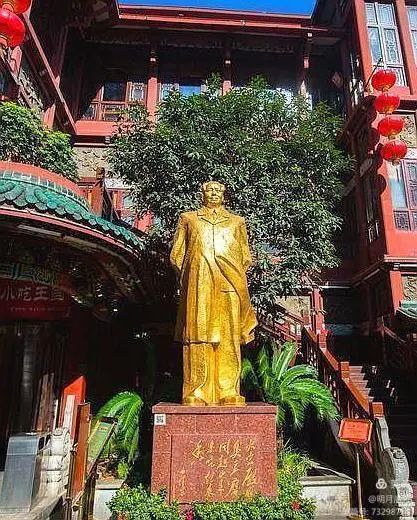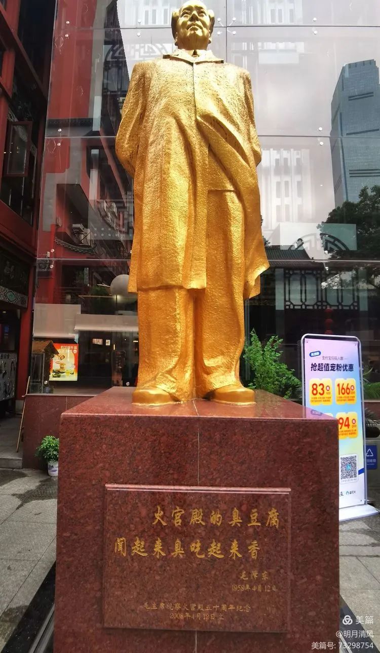 现位于火宫殿内坪的毛主席雕像及语录。↓