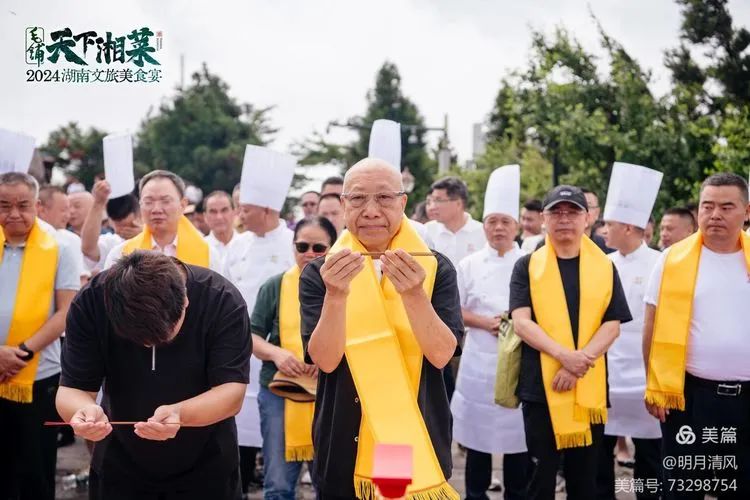 湖南省湘菜产业促进会执行会长易军领诵《祭火神文》。↓