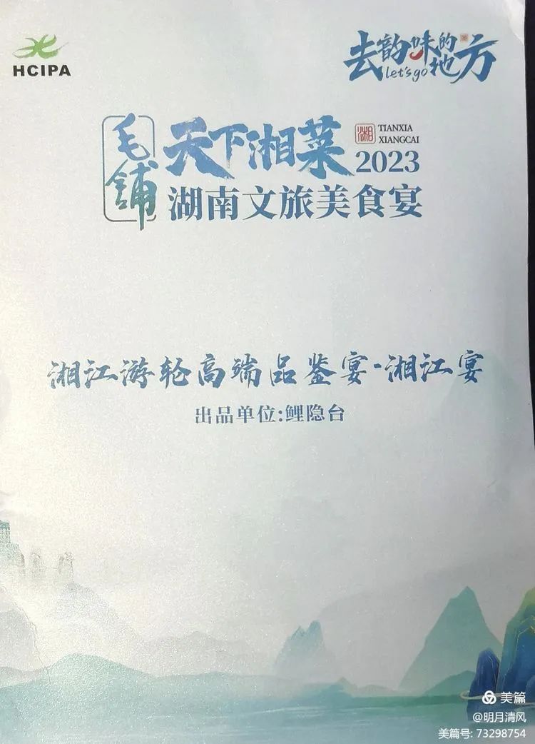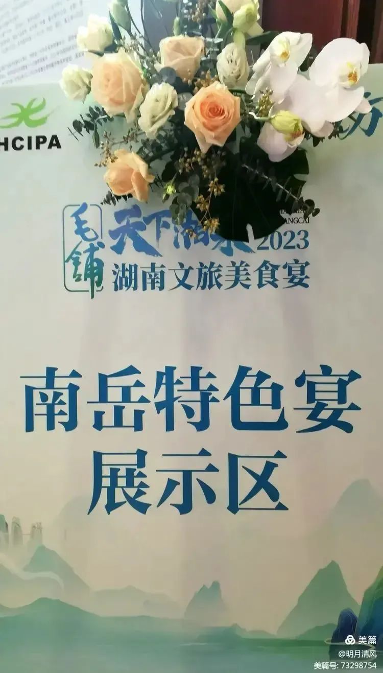 中共长沙市委宣传部原副部长、长沙市新闻出版局原党组书记、长沙市湖湘文化交流协原副会长、现协会咨询委员会副主任江权度先生专门为“2024·天下湘菜·湖南文旅美食宴”衡阳南岳启动式撰联: