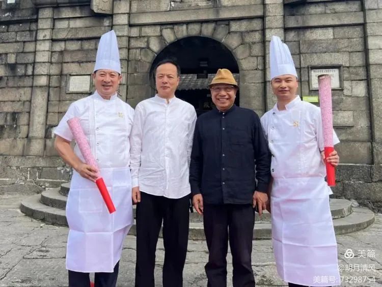 中国烹饪大师、湘菜大师、湘菜文化大师,省餐协副会长,湘西自治州餐饮协会会长,永顺县篮协主席,永顺县两民企业协会会长吴明喜(左一),举办红军长征宴当天他与省湘菜产业促进会的三位同志合影留念。↓